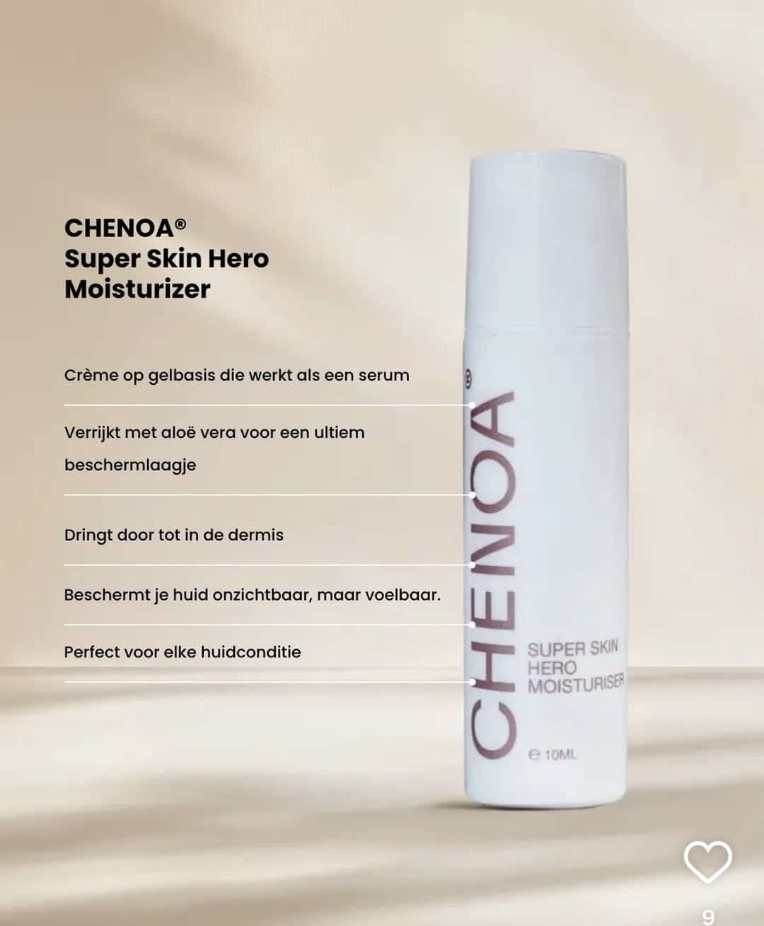 Breng aan op een gereinigde huid. Zachtjes inmasseren in de huid van het gezicht en de hals. Geschikt voor dagelijks gebruik, ‘s ochtends en ‘s avonds of zoals gewenst. Aan te raden om te combineren met een CHENOA® serum.